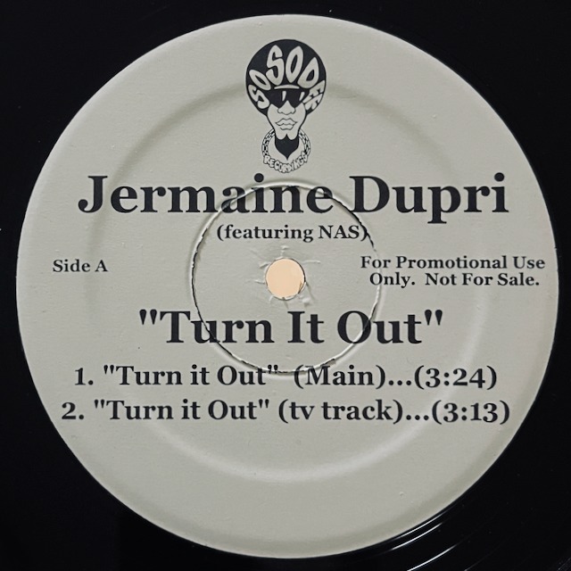 SO SO DEFのボス、JERMAINE DUPRIの97年のソロ・デビュー作「LIFE IN 1472 : THE ORIGINAL SOUNDTRACK」からのプロモオンリー・シングル。同作からは、CROOKLYN CLANの人気トラックス"SAY WHUUT"で使用されたことでも知られるJAY-Zとの"MONEY AIN'T A THING"が有名ですが、オールドスクールの古典、DAVY DMX"ONE FOR THE TREBLE"をベタ敷きしたオールドスクール風味の一曲。完全に客演のNASが主役を喰ってしまっていますが、今となってはむしろNASの大ネタ客演仕事として覚えておくべき。テストプロモのみで、当時からあまり見掛けなかった一枚。 A-1 TURN IT OUT(MAIN) A-2 TURN IT OUT(TV TRACK) B-1 TURN IT OUT(CLEAN LP) B-2 TURN IT OUT(A CAPELLA) 【フォーマット】12" 【レーベル】SO SO DEF 【年代/国名】-/US 【盤質/ジャケット】EX-/-