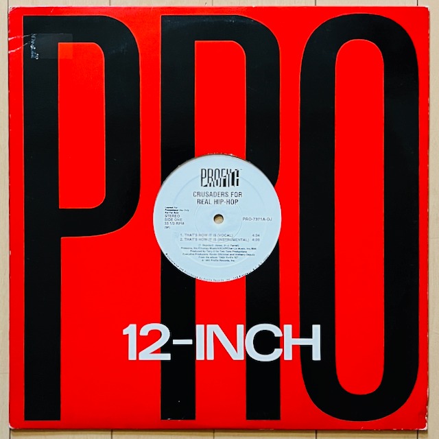 TONY Dが在籍したニュージャージーのB級ニュースクール・グループ、CRUSADERS FOR REAL HIPHOPがPROFILEに残した2枚のシングルの内の一つ。JOE FARRELL"GREAT GORGE"を使用したもっさりしたビートに、AUDIO TWO"TOP BILLIN'"の声ネタ使いが映える"THAT'S HOW IT IS"、派手な展開が楽しい"HIGHER"は、いかにもTONY D作らしいカラフルなニュースクール仕立て! A-1 THAT'S HOW IT IS(VOCAL) A-2 THAT'S HOW IT IS(INSTRUMENTAL) B-1 HIGHER B-2 HIGHER(INSTRUMENTAL) B-3 POLICE BRUTALITY 【フォーマット】12" 【レーベル】PROFILE 【年代/国名】1992/US 【盤質/ジャケット】EX/EX プロモ盤。