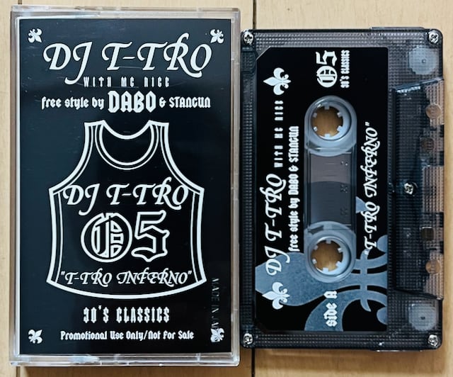 SPHERE OF INFLUENCEのバックDJを務めたDJ TAKUYA-TROPICANAことDJ T-TROのミックス・シリーズ「T-TRO INFERNO」第5弾。シリーズ毎に趣向を変える本シリーズですが、第5作目は90年代のヒップホップ・クラシック・ミックス。冒頭からしてNOTORIOUS B.I.G."UNBELIEVABLE"のビートをジャックしたDABO(とSTANGUN)のフリースタイルで幕を開け、絶妙に捻ったセレクトで展開、合間にホストMCも挟みつつ盛り上げていく構成が良き。もちろん、未CD化の一本。美品。