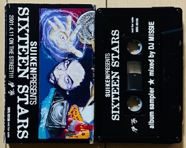 NITRO MICROPHONE UNDERGROUNDメンバーとしてもお馴染みのSUIKENが、EL DORADOで単発リリースを重ね、満を持してSMEJ ASSOCIATED RECORDS(SONY)からのソロ・デビューとなった「SIXTEEN STARS」のプロモ・ミックステープ。NITRO MICROPHONE UNDERGROUNDのライブDJを務める盟友、DJ MISSIEが手掛けた本作は、基本的にアルバム本編の楽曲を美味しく聴かせるタイトル通りのサンプラー仕様ですが、SUIKENの魅力と共に自身のDJスキルもキッチリと収めた巧みな仕上がり。日本語ラップのミックスには定評があるDJ MISSIEだけに、本作も一筋縄ではいかない濃ゆい内容。もちろん未CD化で、当時から配布のみだったレアな一本!紙ジャケも憎い!
