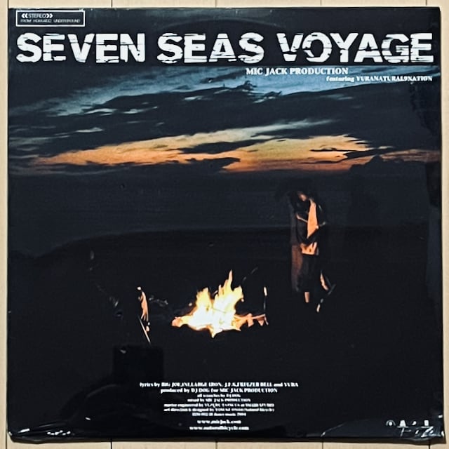 レペゼン北海道、B.I.G JOE率いるMIC JACK PRODUCTIONの最初期音源にして、当時はまだ獄中だったリーダーのB.I.G JOEに宛てた名曲"JAIL BIRD"と共に、(初期の)彼等の代表的一曲!恩田 直幸"A SO BI MA SHO"の美し過ぎるピアノ・リフを使用したDJ DOGG作のビートの上で、B.I.G JOE〜LARGE IRON〜INI〜JFK、そしてトリをNATURAL 9 NATIONのYURAが務めた8分超えの長尺マイクリレー"SEVEN SEAS VOYAGE"は、本来であればYURA前の5番手にFREEZER BELLヴァースが録音されるはずだったというインスト部分もろともクラシック!裏には、LARGE IRONとINIの2MC布陣の掛け合いで引っ張る"NATURAL"のオリジナル・バージョンと、この形のみのJFKのソロ・バージョンとなる"NATURAL"(SP STYLE)の2テイクをインスト付きで収録。シールド。