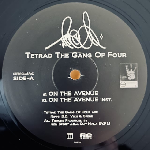 NIPPS、B.D. THE BROBUS、VIKN、SPERBからなるTETRAD THE GANG OF FOURの2010年の2NDアルバム「SPY GAME」からの2枚のシングルの内の一つ。KEN SPORT作のタフなビートに4人のマイクリレーがド直球に格好良い"ON THE AVENUE"に加え、裏には"LAILA"と共に"KILLA INDO"似のオリエンタルなビートに乗り込む"ARAB"をインスト付きで収録したダブル・サイダー!シールド。