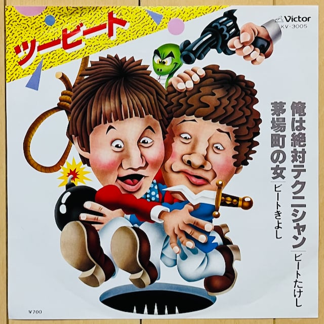 漫才ブームの勢い余ってツービート名義で発表した、81年のスプリット45!ビートきよしのムード歌謡"茅場町の女"は置いておくとしても、やはり注目すべきは遠藤 賢治(!)が手掛けたビートたけしの下ネタ・テクノ歌謡"俺は絶対テクニシャン"!ビートたけしの破天荒なキャラクターそのままに暴れまくる珍品で、"浅草キッド"の印象で接するときっと火傷します...。