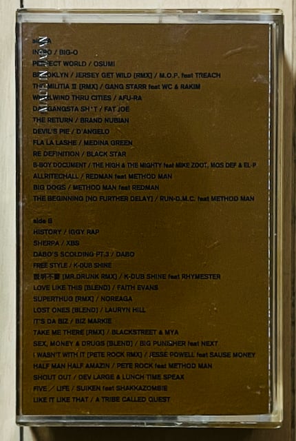 SHAKKAZOMBIEやNITRO MICROPHONE UNDERGROUND周辺で活動し、2000年代にはHARLEMの看板DJの一人にまで上り詰めたDJ HAZIMEの、キャリア初期の「MIXTAPE」シリーズ第5弾。2000年代初頭に旬だったメインストリームど真ん中のヒップホップ/R&Bのセレクトは、今となってはクラシック化しているものもそうでないものも疎らな印象ですが、本シリーズはココでしか聴けない日本語ラップ・アクトの音源で人気!第5弾は、兄貴分のBIG-O(OSUMI)のシャウトに始まり、IGGY RAPことヒデボウイの"HISTORY"、DABO"DABO'S SCOLDING PT.3"(LAURYN HILL"LOST ONES"のビート・ジャック)、XBS"SHERPA"(RASCO"TAKE IT BACK HOME"のビート・ジャック)、K-DUB SHINEのフリースタイル(!)、そしてDEV-LARGE & LUNCH TIME SPEAXのシャウト(!!)等、エクスクルーシブ音源多数、さらにUS曲のオリジナルのブレンドも多数収録した、全10作中でも特に贅沢な仕上がり。今となっては全10作をコンプリートしたいマニアも多いはず...!もちろん、未CD化の一本!