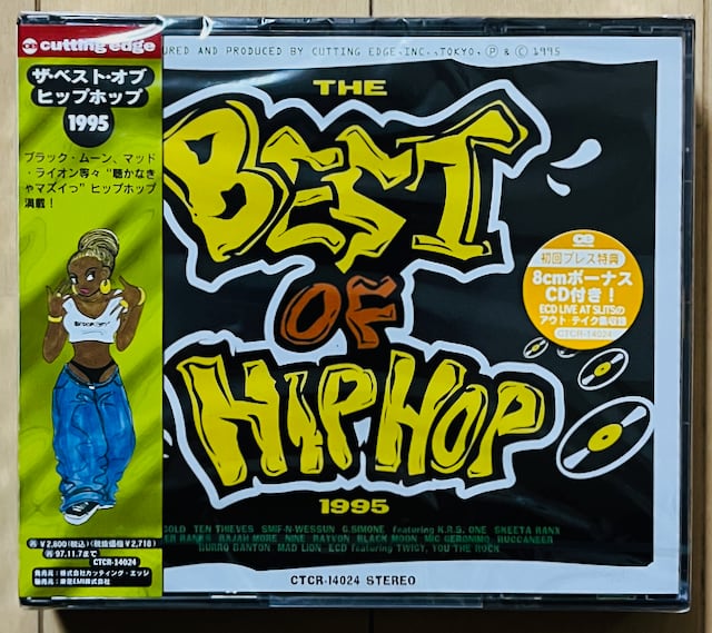 翌年には、かのヒップホップの名著、THE PERFECT BEATS誌を監修するECDが95年に監修したUSヒップホップ〜ラガ・ヒップホップのV.A.。SMIF-N-WESSUN"BUCKTOWN"やBLACK MOON"BUCK EM DOWN"(DA BEATMINERZ REMIX)、MIC GERONIMO"MASTA I.C."辺りのクラシックから、MAD LION"TAKE IT EASY"やRAYVON"PRETTY"辺りのラガ・ヒップホップに、BURRO BANTONやBUCCANEERといったレゲエ畑のDEEJAYのヒップホップ仕立てなREMIXに、KRS-ONEの元嫁、G. SIMONE"MUSIC FOR THE 90'S"等、今となれば正直BOOT CAMP周辺以外はB級クラシックが良いところの小粒具合ではあるものの、AVEX傘下(で、当時まだTOSHIBA EMIと蜜月関係)のCUTTING EDGEからオフィシャルでこの辺りのマイナー曲がコンパイルされた事実がそもそも快挙!しっかりと頭とトリに自身の"SUMER MADNESS"/"MASS対CORE"を収録している構成にもニヤリとさせられます。初回のみ、ECDの「LIVE AT SLITS」には未収録だった"DO THE BOOGIE BACK"/"バイブレーション"のライブ・テイクを収録したシングルCD付き!ECDのファンでもコレは知らない人も多いのでは...!フィジカルはこの形のみのレアな一枚!R.I.P. ECD...。未開封。