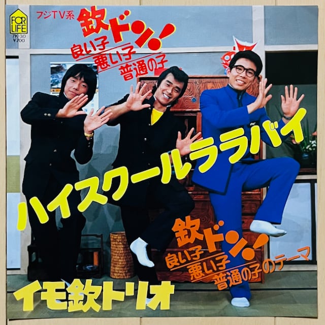 欽ちゃんこと萩本 欽一が司会を務めたバラエティー番組「欽ドン!良い子悪い子普通の子」から生まれたコミックソング・ユニット、イモ欽トリオのデビューシングル。作曲・編曲を細野 晴臣、作詞を松本 隆が務め、当時のテクノ・ポップ・ブームに真っ向から飛び乗った大ヒット曲!テクノ歌謡マニアクス誌にも掲載される等、PERFUME以降のテクノ歌謡リバイバルで多少は再評価されたかも。実際、テクノ・ポップV.A.「イエローマジック歌謡曲」にも収録されました。裏には、同番組のテーマ曲"欽ドン良い子悪い子普通の子のテーマ"収録。イナタ過ぎるジャケに涙が出ます...。「こんなに好きやのに つれないなぁー なぁぁぁぁぁぁーーっ!」。